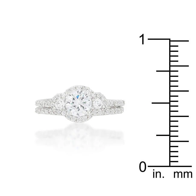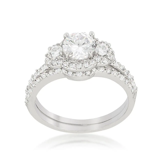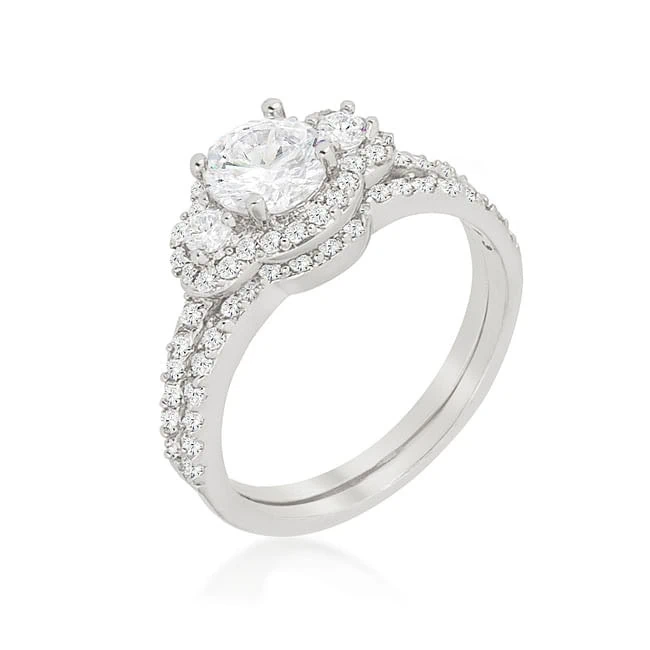 Elegant style is on display with this fabulous wedding set. Genuine Rhodium Plating is achieved using an electroplating process that coats the item with heavy layers of rhodium a close cousin to platinum which gives our jewelry a platinum luster.